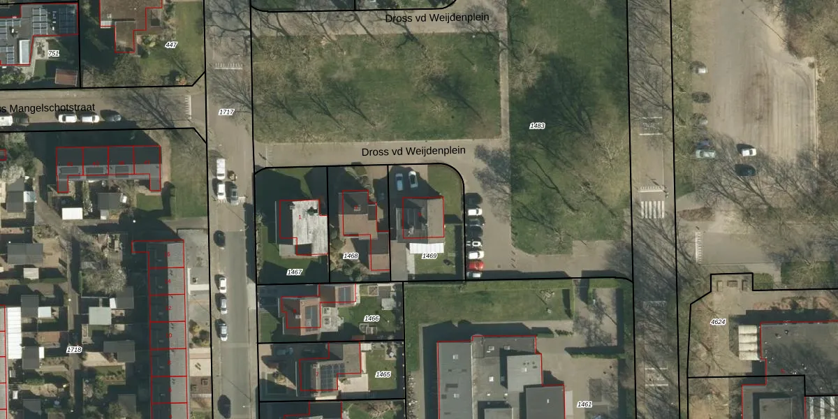 Dross vd Weijdenplein 5 is gelegen op kadastraal perceel STE00G1469. Deze kadastrale aanduiding is uniek en wordt gebruikt door het Kadaster om eigendomsrechten en andere zakelijke rechten vast te leggen. Het perceel maakt onderdeel uit van de kadastrale gemeente Stein.