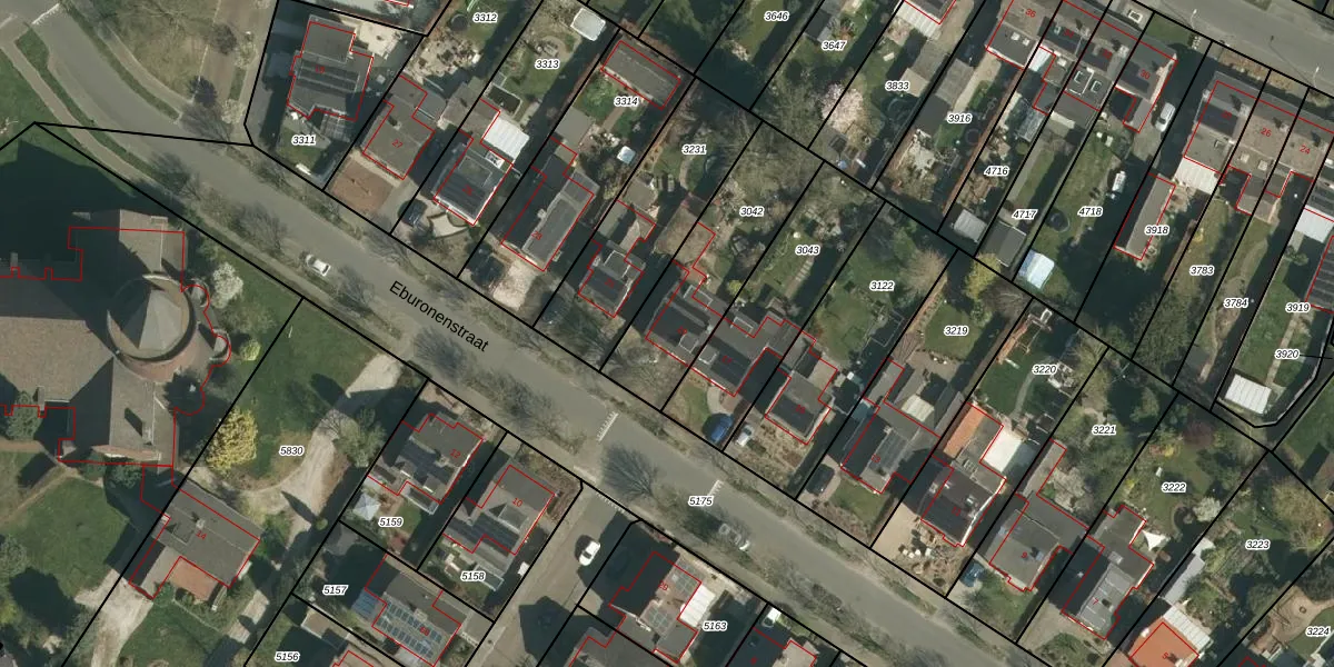 Het perceel waarop Eburonenstraat 19 staat heeft een oppervlakte van 496 m². Dit is een groot perceel. De perceeloppervlakte wordt geregistreerd door het Kadaster. Gedetailleerde informatie over de maten van dit perceel kunt u vinden in het rapport Kadastrale kaart met maatvoering van Eburonenstraat 19.