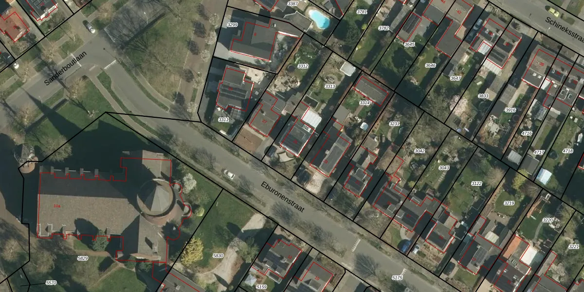 Eburonenstraat 25 is gelegen op kadastraal perceel STE00B3313. Deze kadastrale aanduiding is uniek en wordt gebruikt door het Kadaster om eigendomsrechten en andere zakelijke rechten vast te leggen. Het perceel maakt onderdeel uit van de kadastrale gemeente Stein.