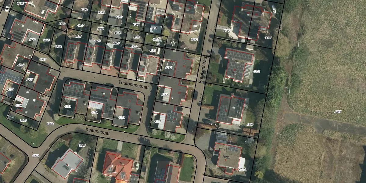 Frankenstraat 10 is gelegen op kadastraal perceel STE00B4182. Deze kadastrale aanduiding is uniek en wordt gebruikt door het Kadaster om eigendomsrechten en andere zakelijke rechten vast te leggen. Het perceel maakt onderdeel uit van de kadastrale gemeente Stein.