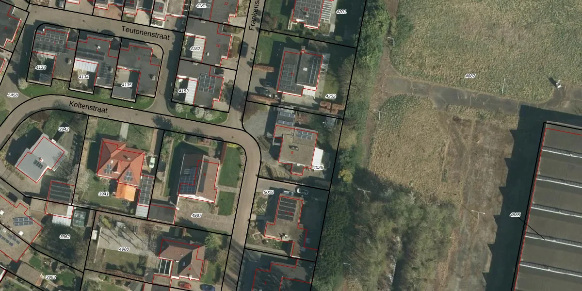 Frankenstraat 9 is gelegen op kadastraal perceel STE00B4026. Deze kadastrale aanduiding is uniek en wordt gebruikt door het Kadaster om eigendomsrechten en andere zakelijke rechten vast te leggen. Het perceel maakt onderdeel uit van de kadastrale gemeente Stein.