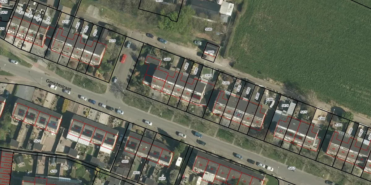 Gerichtstraat 20 is gelegen op kadastraal perceel STE00B5404. Deze kadastrale aanduiding is uniek en wordt gebruikt door het Kadaster om eigendomsrechten en andere zakelijke rechten vast te leggen. Het perceel maakt onderdeel uit van de kadastrale gemeente Stein.