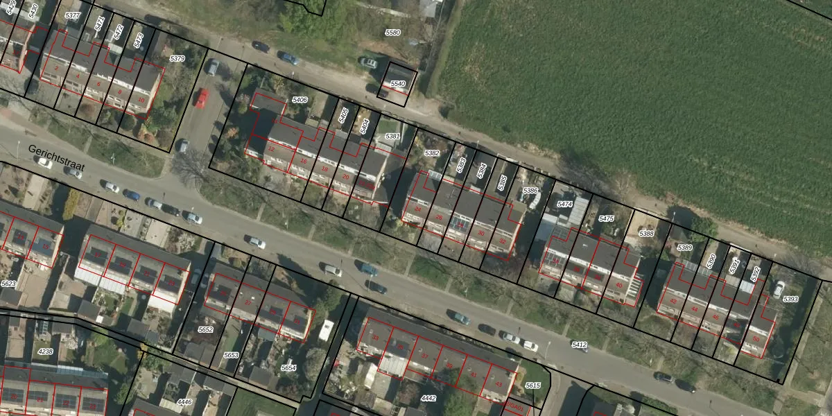Het perceel waarop Gerichtstraat 24 staat heeft een oppervlakte van 253 m². Dit is een middelgroot perceel. De perceeloppervlakte wordt geregistreerd door het Kadaster. Gedetailleerde informatie over de maten van dit perceel kunt u vinden in het rapport Kadastrale kaart met maatvoering van Gerichtstraat 24.