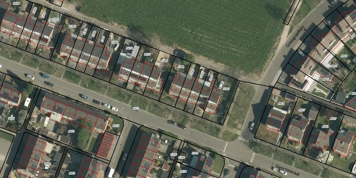 Het perceel waarop Gerichtstraat 42 staat heeft een oppervlakte van 253 m². Dit is een middelgroot perceel. De perceeloppervlakte wordt geregistreerd door het Kadaster. Gedetailleerde informatie over de maten van dit perceel kunt u vinden in het rapport Kadastrale kaart met maatvoering van Gerichtstraat 42.