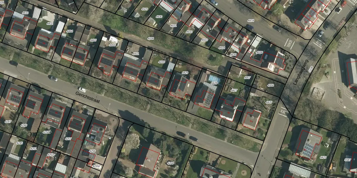 Het perceel waarop Gerichtstraat 78 staat heeft een oppervlakte van 381 m². Dit is een groot perceel. De perceeloppervlakte wordt geregistreerd door het Kadaster. Gedetailleerde informatie over de maten van dit perceel kunt u vinden in het rapport Kadastrale kaart met maatvoering van Gerichtstraat 78.