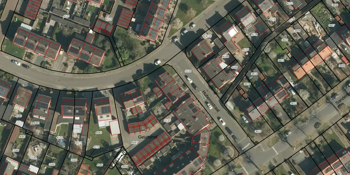 Het perceel waarop Geurtshof 20 staat heeft een oppervlakte van 3320 m². Dit is een zeer groot perceel. De perceeloppervlakte wordt geregistreerd door het Kadaster. Gedetailleerde informatie over de maten van dit perceel kunt u vinden in het rapport Kadastrale kaart met maatvoering van Geurtshof 20.