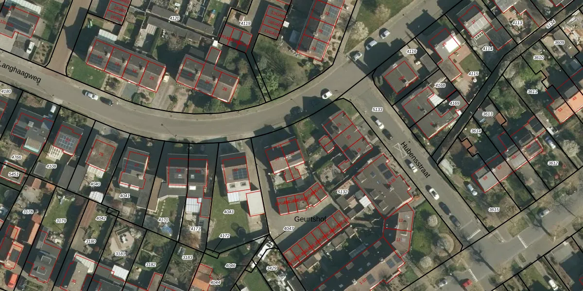 Het perceel waarop Geurtshof 22 staat heeft een oppervlakte van 3320 m². Dit is een zeer groot perceel. De perceeloppervlakte wordt geregistreerd door het Kadaster. Gedetailleerde informatie over de maten van dit perceel kunt u vinden in het rapport Kadastrale kaart met maatvoering van Geurtshof 22.