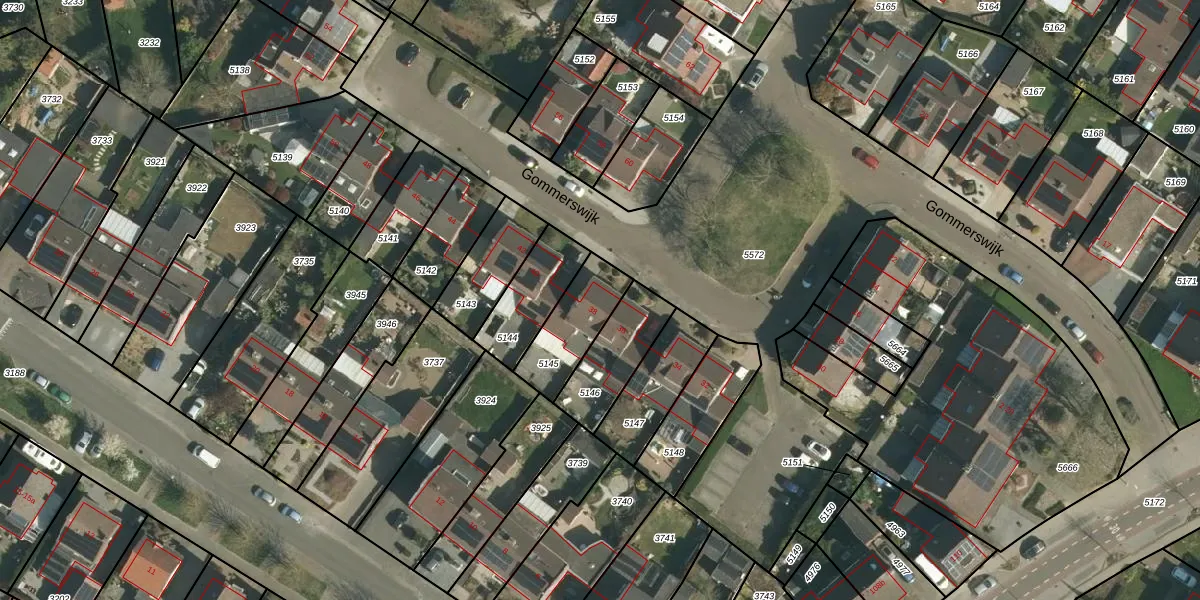 Gommerswijk 38 is gelegen op kadastraal perceel STE00B5145. Deze kadastrale aanduiding is uniek en wordt gebruikt door het Kadaster om eigendomsrechten en andere zakelijke rechten vast te leggen. Het perceel maakt onderdeel uit van de kadastrale gemeente Stein.