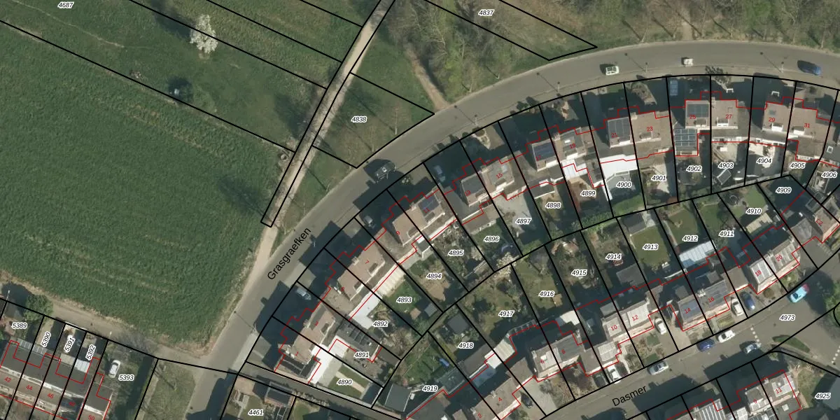 Grasgraefken 11 is gelegen op kadastraal perceel STE00B4895. Deze kadastrale aanduiding is uniek en wordt gebruikt door het Kadaster om eigendomsrechten en andere zakelijke rechten vast te leggen. Het perceel maakt onderdeel uit van de kadastrale gemeente Stein.