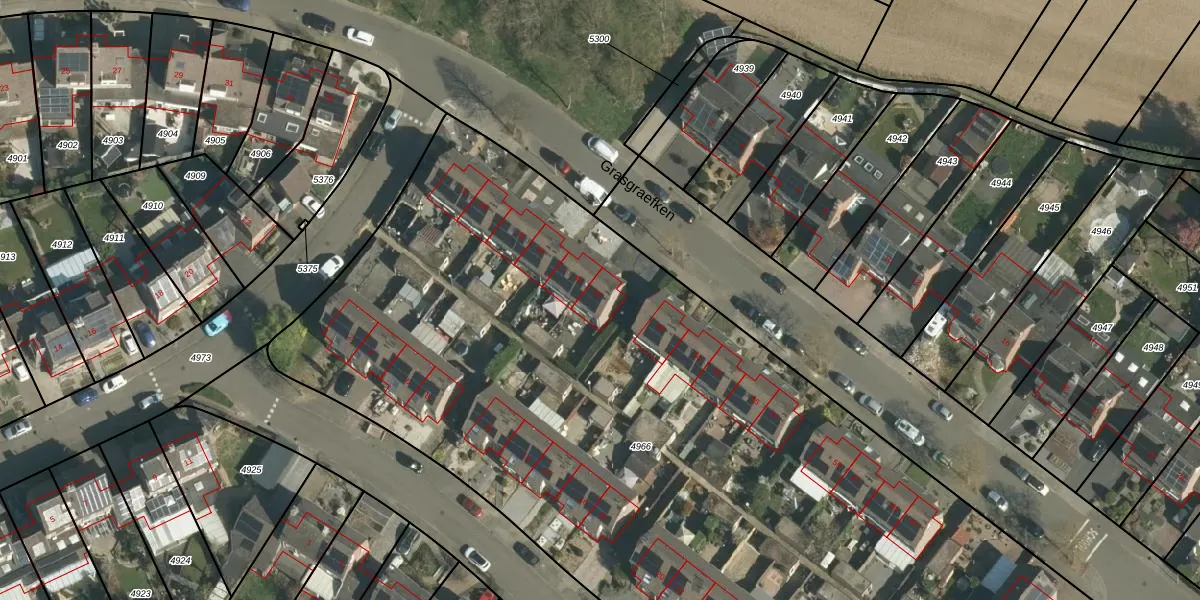 Grasgraefken 47 is gelegen op kadastraal perceel STE00B4966. Deze kadastrale aanduiding is uniek en wordt gebruikt door het Kadaster om eigendomsrechten en andere zakelijke rechten vast te leggen. Het perceel maakt onderdeel uit van de kadastrale gemeente Stein.