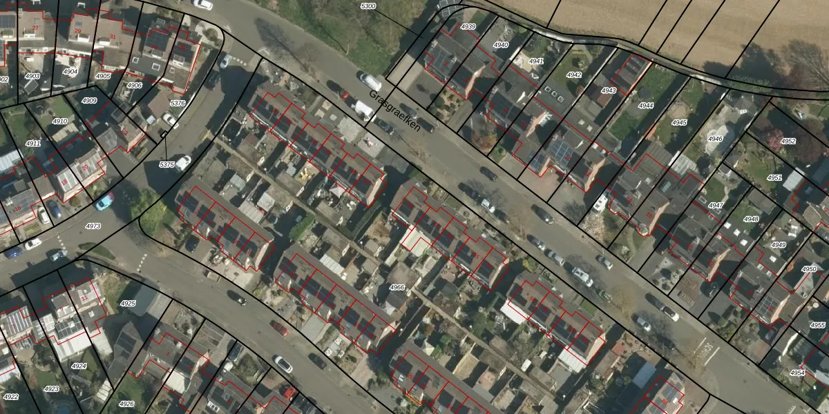 Grasgraefken 49 is gelegen op kadastraal perceel STE00B4966. Deze kadastrale aanduiding is uniek en wordt gebruikt door het Kadaster om eigendomsrechten en andere zakelijke rechten vast te leggen. Het perceel maakt onderdeel uit van de kadastrale gemeente Stein.