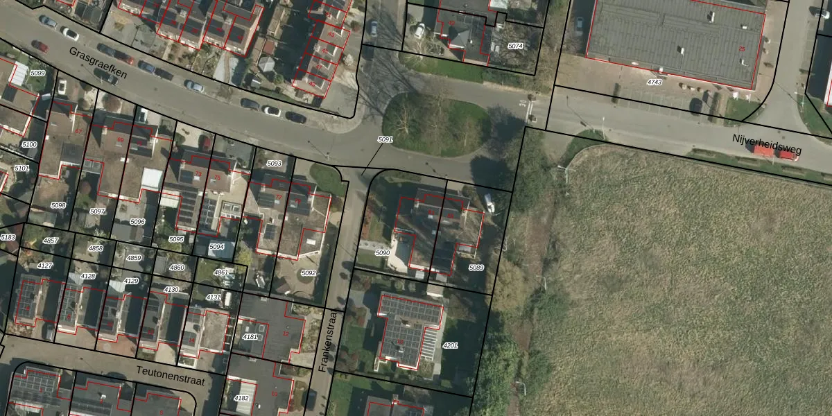 Gebruik de zoekbalk of klik op een perceel voor informatie over de adressen binnen dit perceel.
