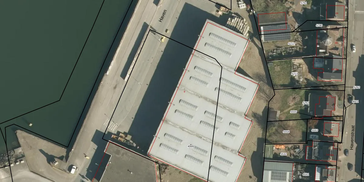 Het perceel waarop Haven 6 staat heeft een oppervlakte van 3805 m². Dit is een zeer groot perceel. De perceeloppervlakte wordt geregistreerd door het Kadaster. Gedetailleerde informatie over de maten van dit perceel kunt u vinden in het rapport Kadastrale kaart met maatvoering van Haven 6.