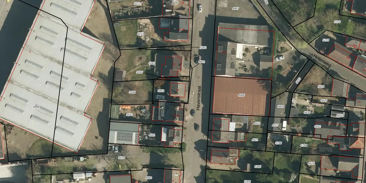 Havenstraat 16 is gelegen op kadastraal perceel STE00B5553. Deze kadastrale aanduiding is uniek en wordt gebruikt door het Kadaster om eigendomsrechten en andere zakelijke rechten vast te leggen. Het perceel maakt onderdeel uit van de kadastrale gemeente Stein.