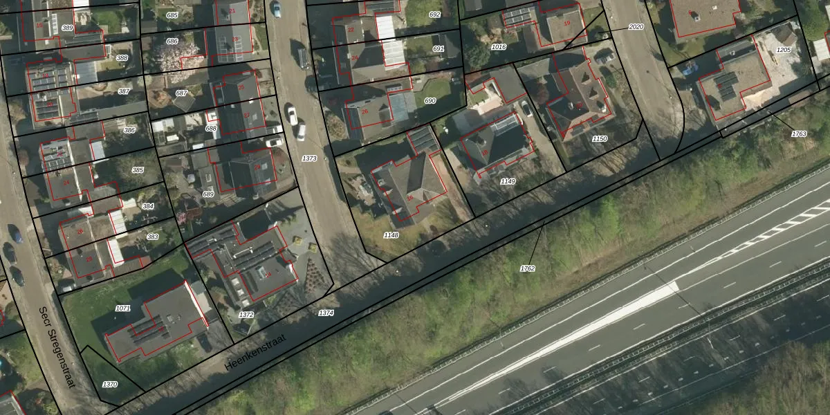 Heenkenstraat 16 is gelegen op kadastraal perceel STE00G1148. Deze kadastrale aanduiding is uniek en wordt gebruikt door het Kadaster om eigendomsrechten en andere zakelijke rechten vast te leggen. Het perceel maakt onderdeel uit van de kadastrale gemeente Stein.