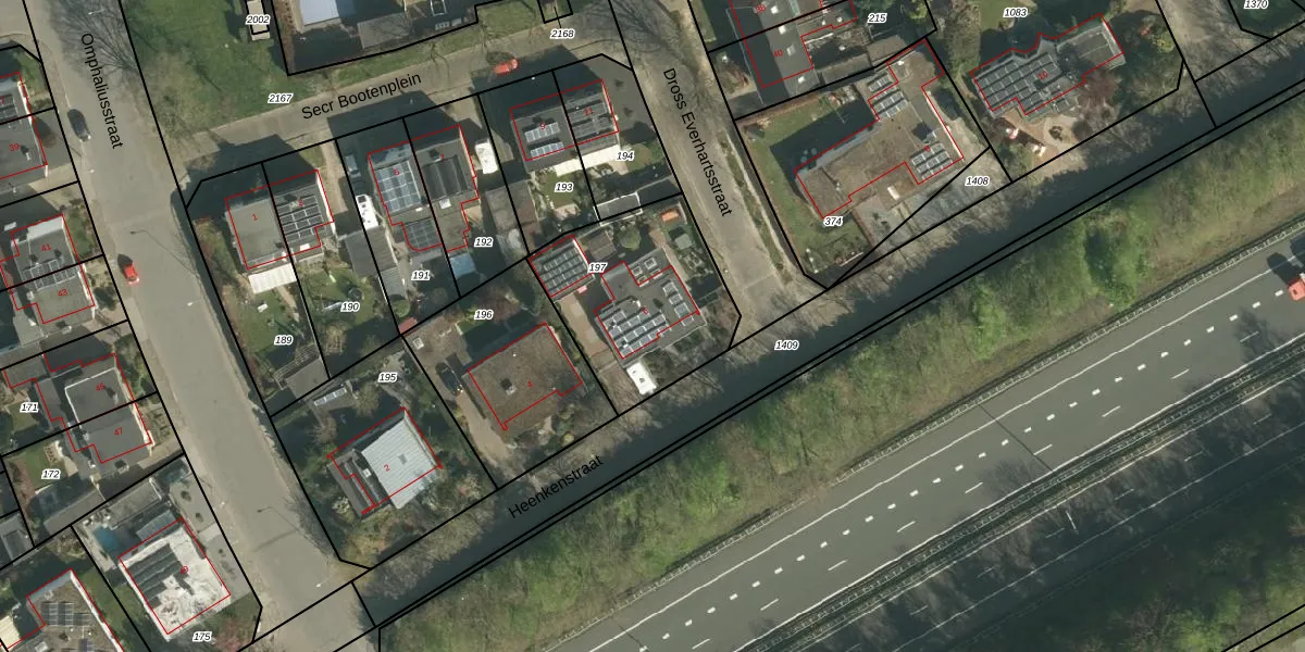 Gebruik de zoekbalk of klik op een perceel voor informatie over de adressen binnen dit perceel.