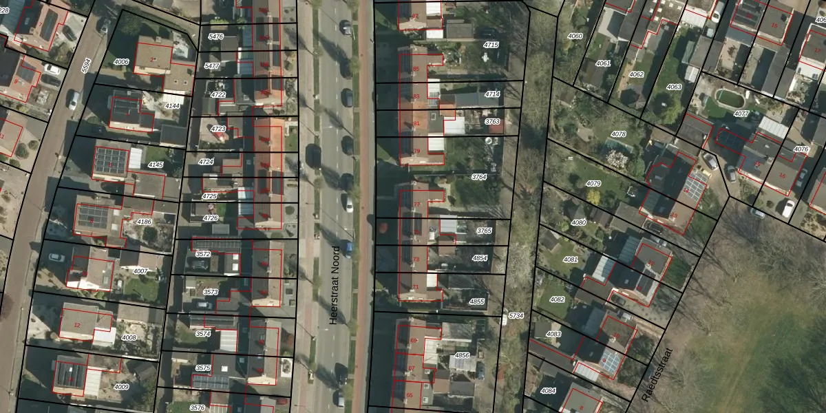Het perceel waarop Heerstraat Noord 77 staat heeft een oppervlakte van 665 m². Dit is een groot perceel. De perceeloppervlakte wordt geregistreerd door het Kadaster. Gedetailleerde informatie over de maten van dit perceel kunt u vinden in het rapport Kadastrale kaart met maatvoering van Heerstraat Noord 77.