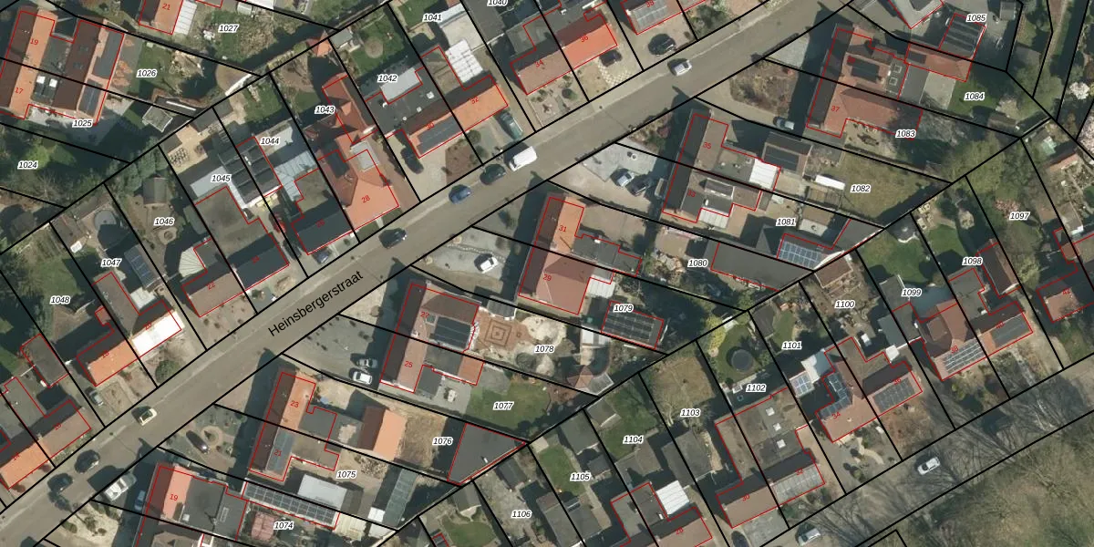 Het perceel waarop Heinsbergerstraat 29 staat heeft een oppervlakte van 594 m². Dit is een groot perceel. De perceeloppervlakte wordt geregistreerd door het Kadaster. Gedetailleerde informatie over de maten van dit perceel kunt u vinden in het rapport Kadastrale kaart met maatvoering van Heinsbergerstraat 29.