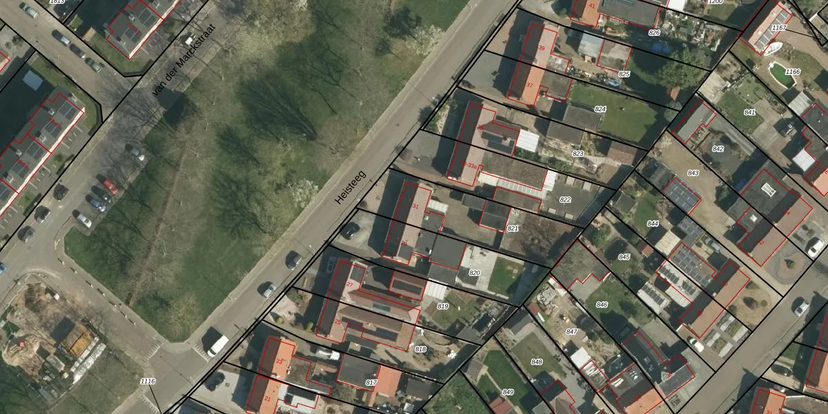 Heisteeg 31 is gelegen op kadastraal perceel STE00F821. Deze kadastrale aanduiding is uniek en wordt gebruikt door het Kadaster om eigendomsrechten en andere zakelijke rechten vast te leggen. Het perceel maakt onderdeel uit van de kadastrale gemeente Stein.