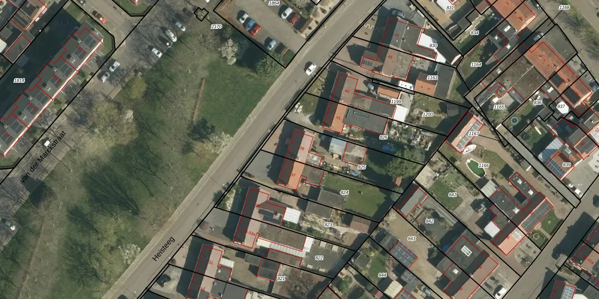 Heisteeg 39 is gelegen op kadastraal perceel STE00F825. Deze kadastrale aanduiding is uniek en wordt gebruikt door het Kadaster om eigendomsrechten en andere zakelijke rechten vast te leggen. Het perceel maakt onderdeel uit van de kadastrale gemeente Stein.