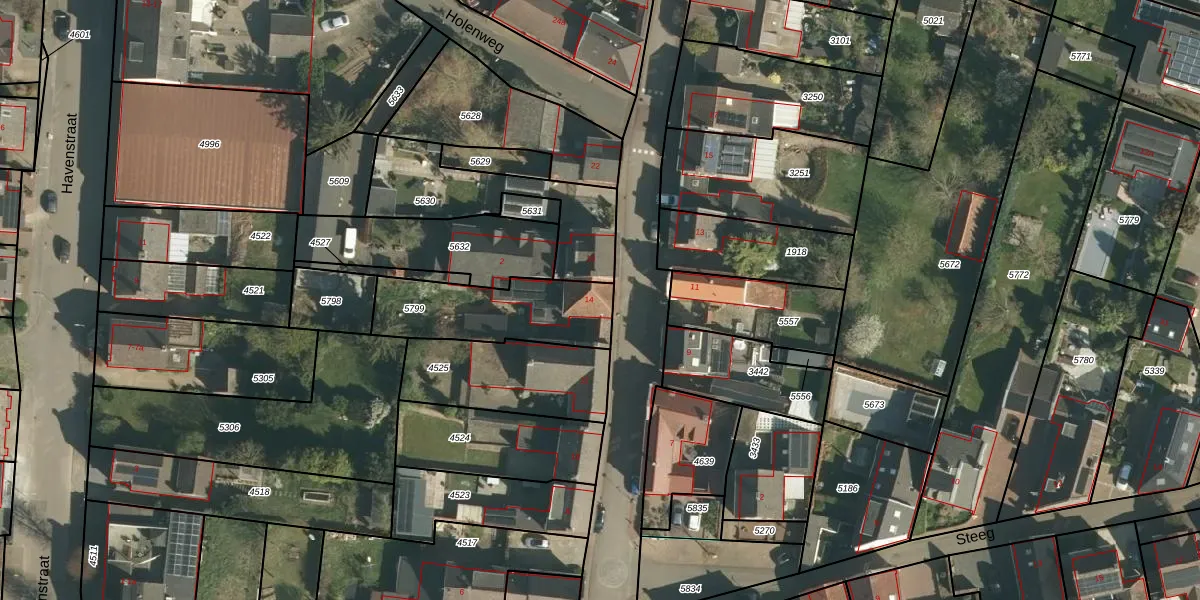 Gebruik de zoekbalk of klik op een perceel voor informatie over de adressen binnen dit perceel.