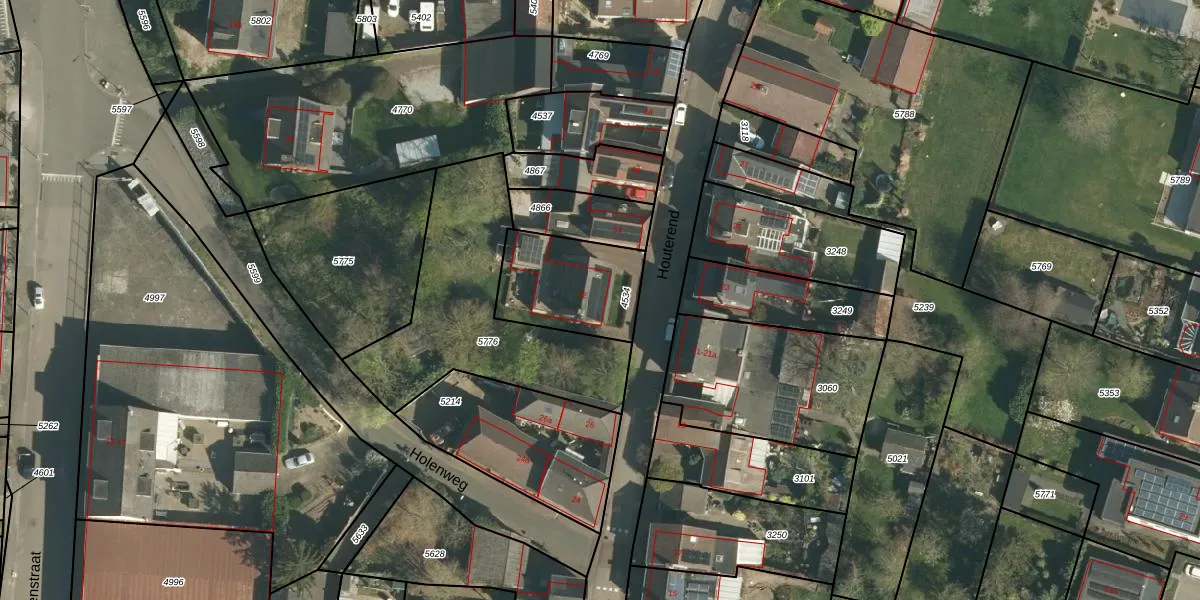 Houterend 32 is gelegen op kadastraal perceel STE00B4534. Deze kadastrale aanduiding is uniek en wordt gebruikt door het Kadaster om eigendomsrechten en andere zakelijke rechten vast te leggen. Het perceel maakt onderdeel uit van de kadastrale gemeente Stein.