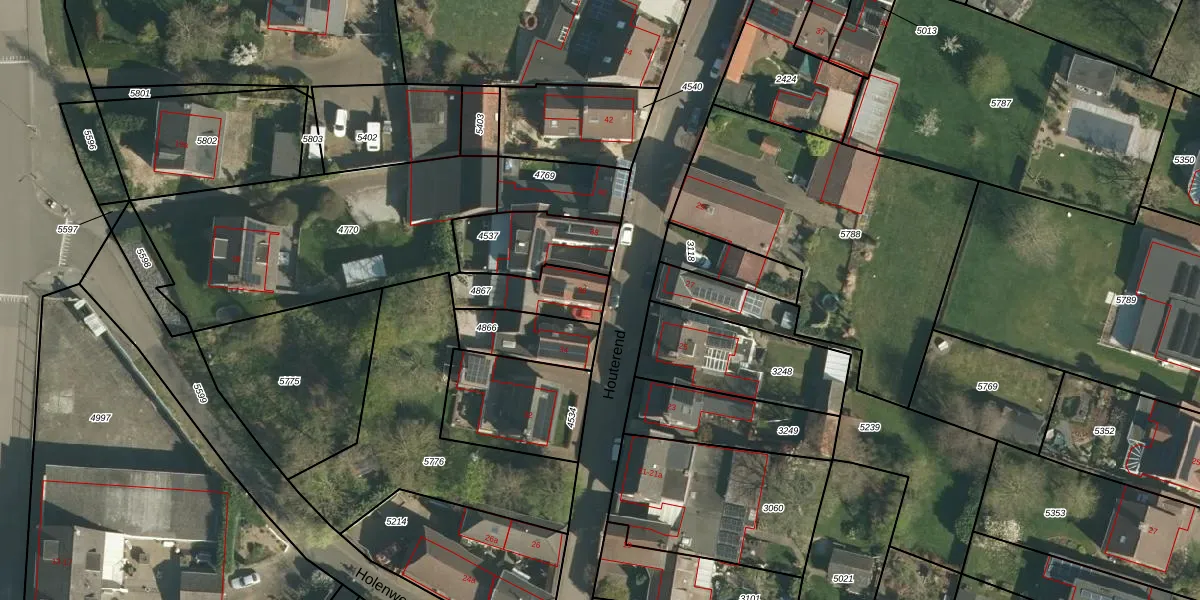 Het perceel waarop Houterend 36 staat heeft een oppervlakte van 175 m². Dit is een middelgroot perceel. De perceeloppervlakte wordt geregistreerd door het Kadaster. Gedetailleerde informatie over de maten van dit perceel kunt u vinden in het rapport Kadastrale kaart met maatvoering van Houterend 36.