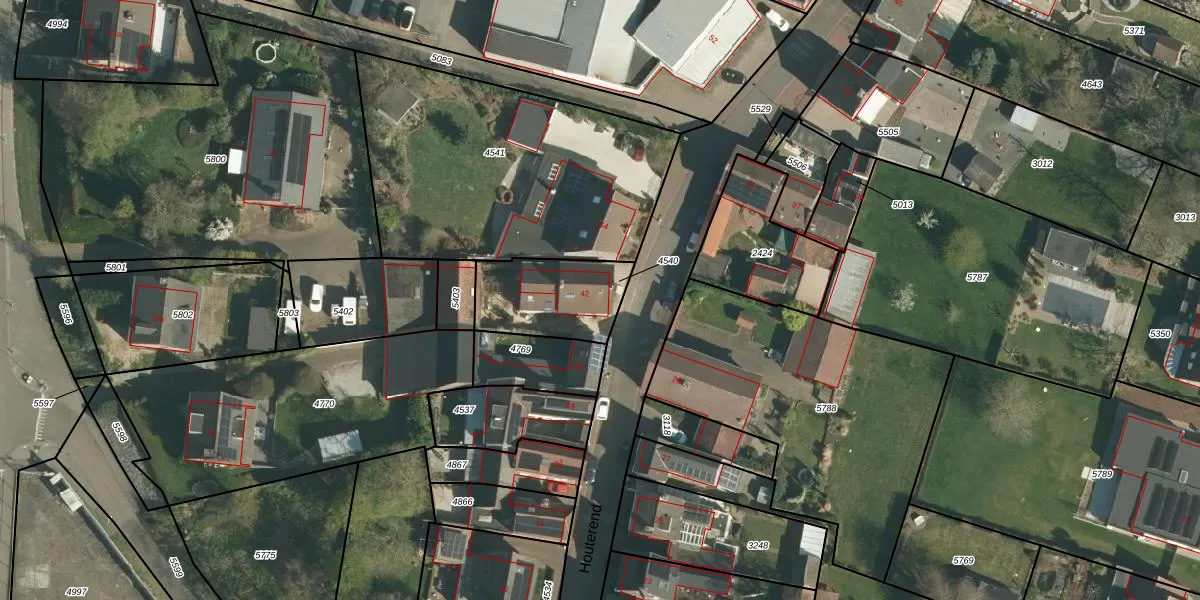 Houterend 42 is gelegen op kadastraal perceel STE00B4540. Deze kadastrale aanduiding is uniek en wordt gebruikt door het Kadaster om eigendomsrechten en andere zakelijke rechten vast te leggen. Het perceel maakt onderdeel uit van de kadastrale gemeente Stein.
