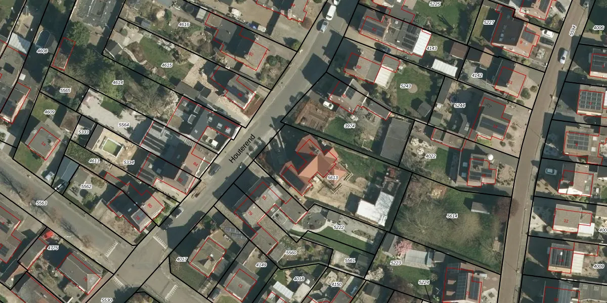 Het perceel waarop Houterend 83 staat heeft een oppervlakte van 1000 m². Dit is een zeer groot perceel. De perceeloppervlakte wordt geregistreerd door het Kadaster. Gedetailleerde informatie over de maten van dit perceel kunt u vinden in het rapport Kadastrale kaart met maatvoering van Houterend 83.