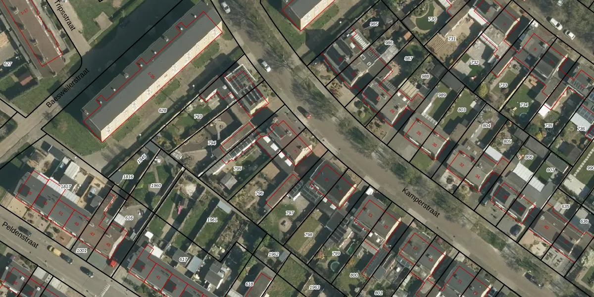 Het perceel waarop Kamperstraat 7 staat heeft een oppervlakte van 417 m². Dit is een groot perceel. De perceeloppervlakte wordt geregistreerd door het Kadaster. Gedetailleerde informatie over de maten van dit perceel kunt u vinden in het rapport Kadastrale kaart met maatvoering van Kamperstraat 7.
