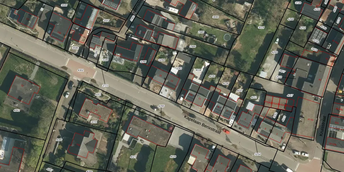 Het perceel waarop Kapelaan Berixstraat 13 staat heeft een oppervlakte van 317 m². Dit is een groot perceel. De perceeloppervlakte wordt geregistreerd door het Kadaster. Gedetailleerde informatie over de maten van dit perceel kunt u vinden in het rapport Kadastrale kaart met maatvoering van Kapelaan Berixstraat 13.