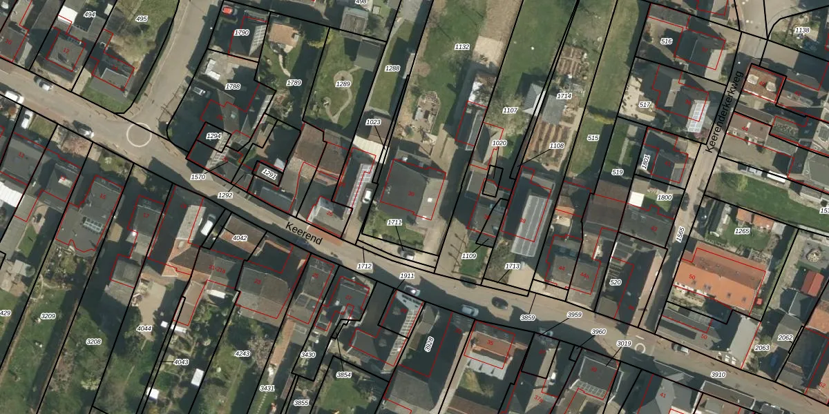 Het perceel waarop Keerend 30 staat heeft een oppervlakte van 1880 m². Dit is een zeer groot perceel. De perceeloppervlakte wordt geregistreerd door het Kadaster. Gedetailleerde informatie over de maten van dit perceel kunt u vinden in het rapport Kadastrale kaart met maatvoering van Keerend 30.