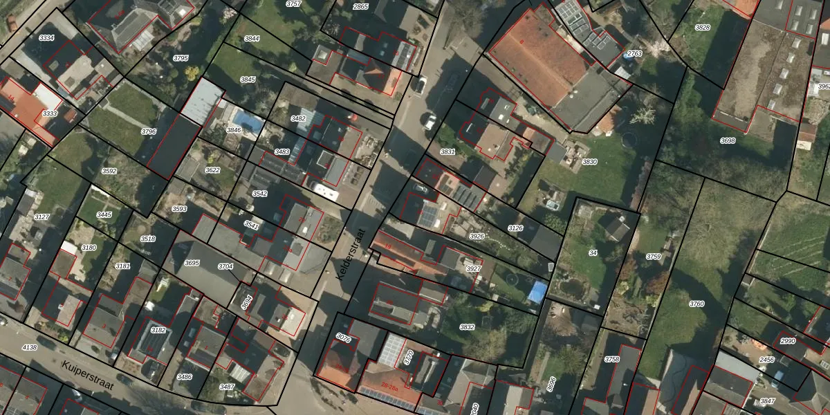 Kelderstraat 16 is gelegen op kadastraal perceel STE00D3926. Deze kadastrale aanduiding is uniek en wordt gebruikt door het Kadaster om eigendomsrechten en andere zakelijke rechten vast te leggen. Het perceel maakt onderdeel uit van de kadastrale gemeente Stein.