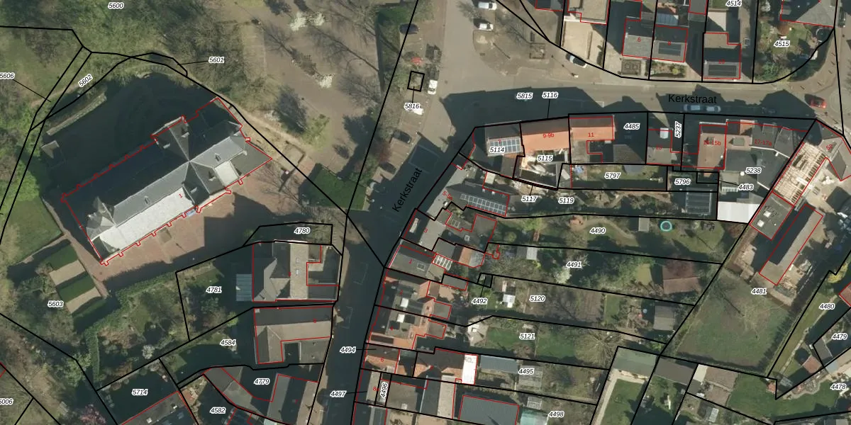 Kerkstraat 5 is gelegen op kadastraal perceel STE00B5119. Deze kadastrale aanduiding is uniek en wordt gebruikt door het Kadaster om eigendomsrechten en andere zakelijke rechten vast te leggen. Het perceel maakt onderdeel uit van de kadastrale gemeente Stein.