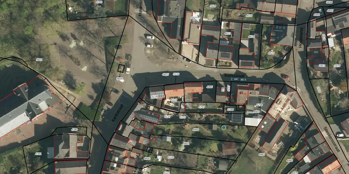 Kerkstraat 9-a is gelegen op kadastraal perceel STE00B5115. Deze kadastrale aanduiding is uniek en wordt gebruikt door het Kadaster om eigendomsrechten en andere zakelijke rechten vast te leggen. Het perceel maakt onderdeel uit van de kadastrale gemeente Stein.
