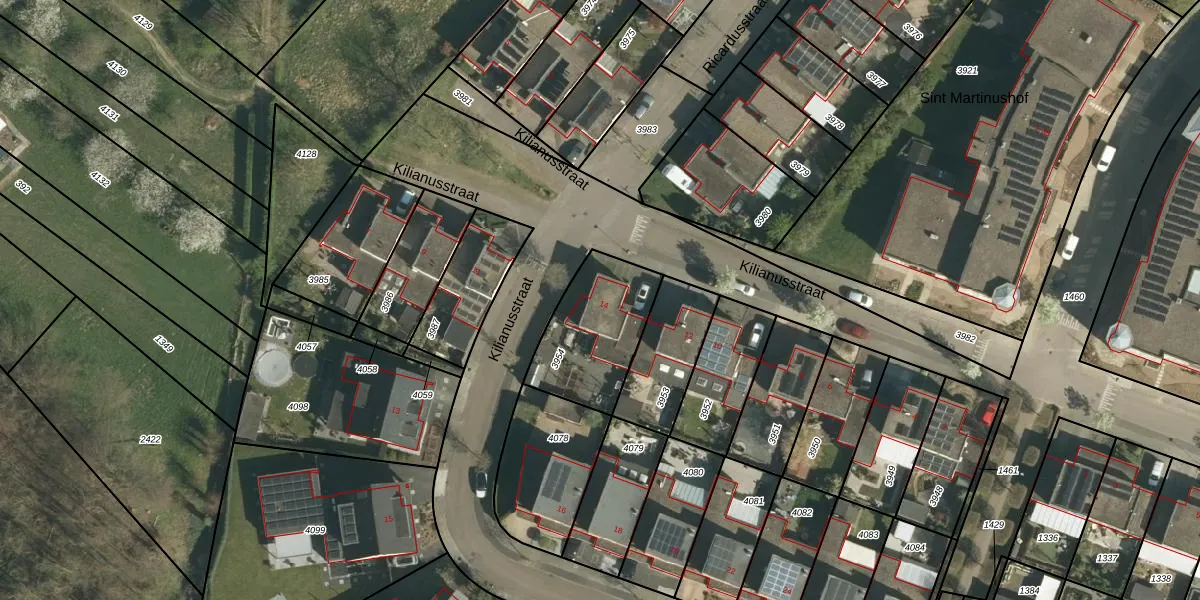 Kilianusstraat 14 is gelegen op kadastraal perceel STE00D3954. Deze kadastrale aanduiding is uniek en wordt gebruikt door het Kadaster om eigendomsrechten en andere zakelijke rechten vast te leggen. Het perceel maakt onderdeel uit van de kadastrale gemeente Stein.