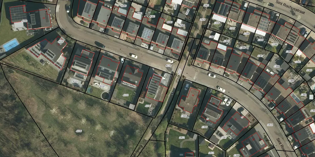 Gebruik de zoekbalk of klik op een perceel voor informatie over de adressen binnen dit perceel.