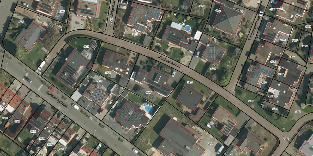 Kimbrenstraat 5 is gelegen op kadastraal perceel STE00B3807. Deze kadastrale aanduiding is uniek en wordt gebruikt door het Kadaster om eigendomsrechten en andere zakelijke rechten vast te leggen. Het perceel maakt onderdeel uit van de kadastrale gemeente Stein.