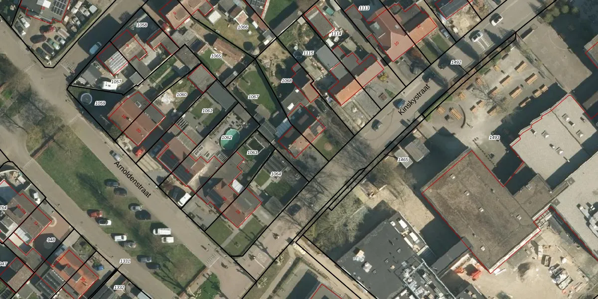 Gebruik de zoekbalk of klik op een perceel voor informatie over de adressen binnen dit perceel.