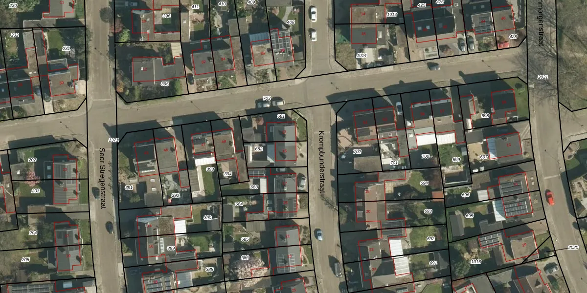Krompbunderstraat 15 is gelegen op kadastraal perceel STE00G682. Deze kadastrale aanduiding is uniek en wordt gebruikt door het Kadaster om eigendomsrechten en andere zakelijke rechten vast te leggen. Het perceel maakt onderdeel uit van de kadastrale gemeente Stein.