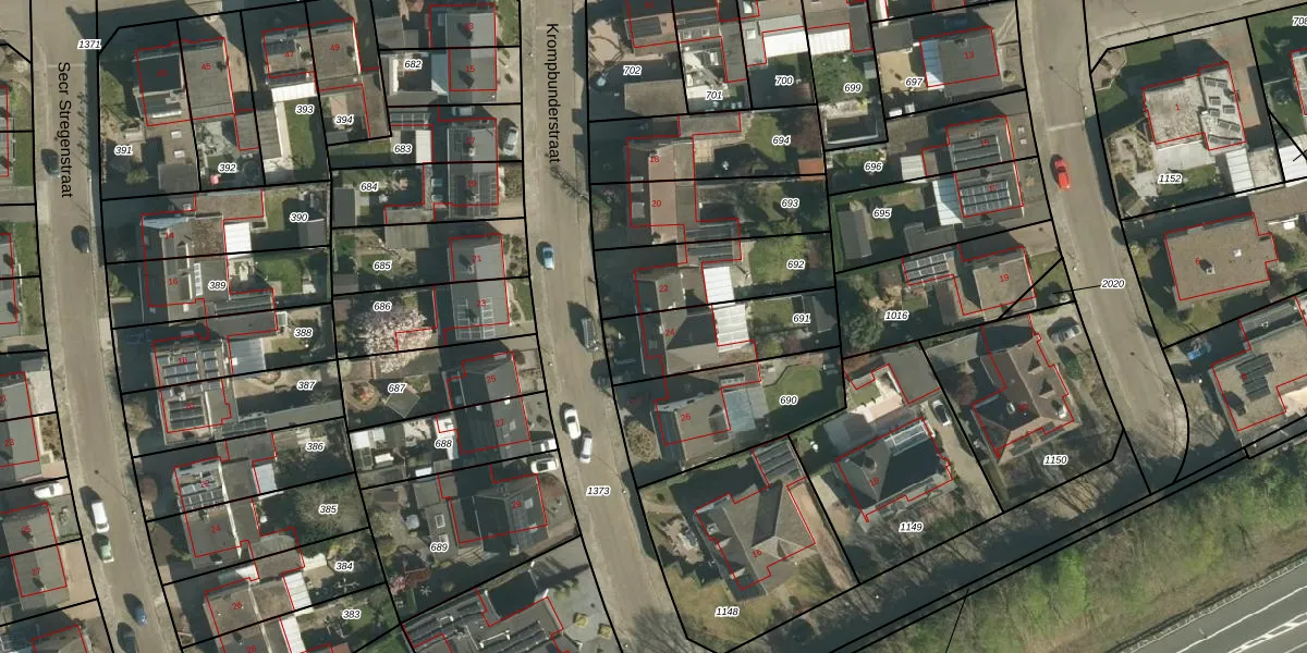 Gebruik de zoekbalk of klik op een perceel voor informatie over de adressen binnen dit perceel.