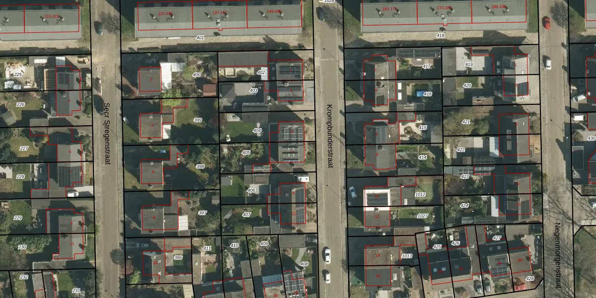 Gebruik de zoekbalk of klik op een perceel voor informatie over de adressen binnen dit perceel.