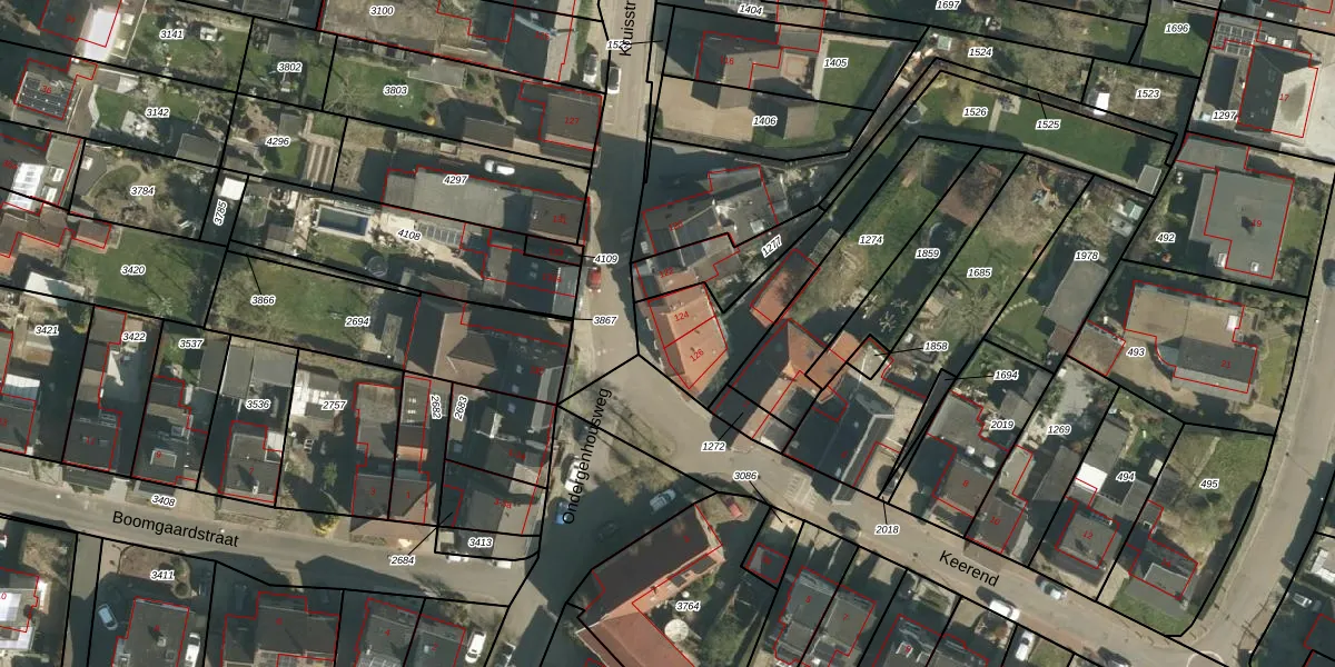 Kruisstraat 124 is gelegen op kadastraal perceel STE00G1526. Deze kadastrale aanduiding is uniek en wordt gebruikt door het Kadaster om eigendomsrechten en andere zakelijke rechten vast te leggen. Het perceel maakt onderdeel uit van de kadastrale gemeente Stein.