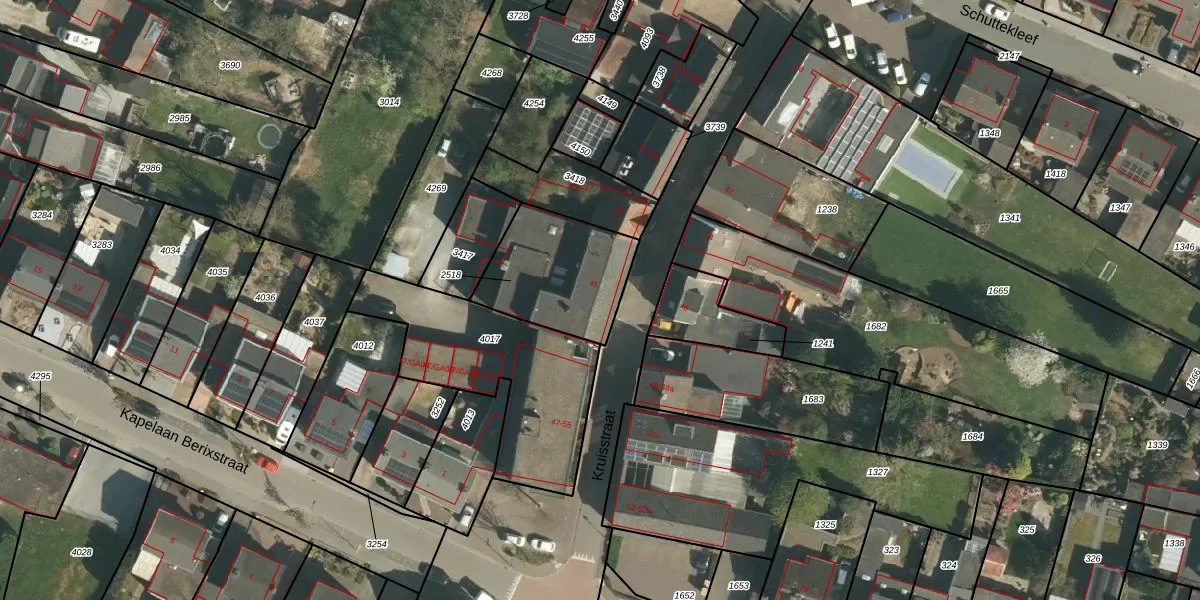 Kruisstraat 45 is gelegen op kadastraal perceel STE00D2518. Deze kadastrale aanduiding is uniek en wordt gebruikt door het Kadaster om eigendomsrechten en andere zakelijke rechten vast te leggen. Het perceel maakt onderdeel uit van de kadastrale gemeente Stein.