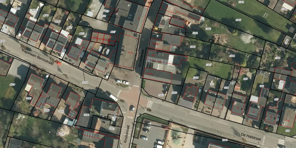 Kruisstraat 52 is gelegen op kadastraal perceel STE00G1327. Deze kadastrale aanduiding is uniek en wordt gebruikt door het Kadaster om eigendomsrechten en andere zakelijke rechten vast te leggen. Het perceel maakt onderdeel uit van de kadastrale gemeente Stein.