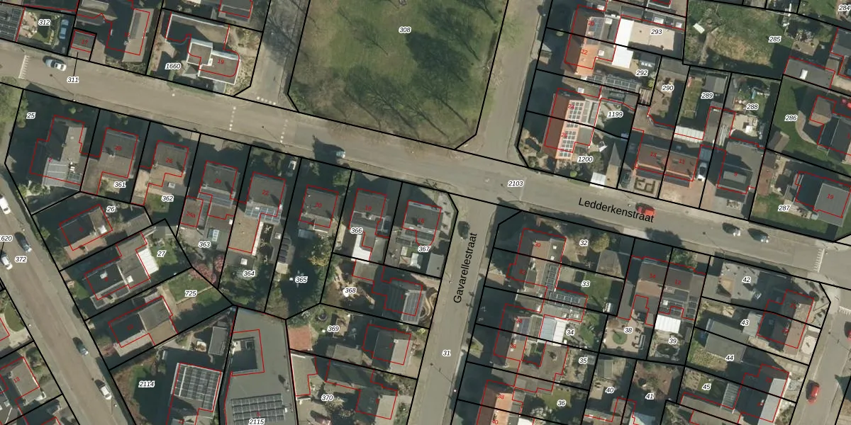 Het perceel waarop Ledderkenstraat 16 staat heeft een oppervlakte van 279 m². Dit is een middelgroot perceel. De perceeloppervlakte wordt geregistreerd door het Kadaster. Gedetailleerde informatie over de maten van dit perceel kunt u vinden in het rapport Kadastrale kaart met maatvoering van Ledderkenstraat 16.