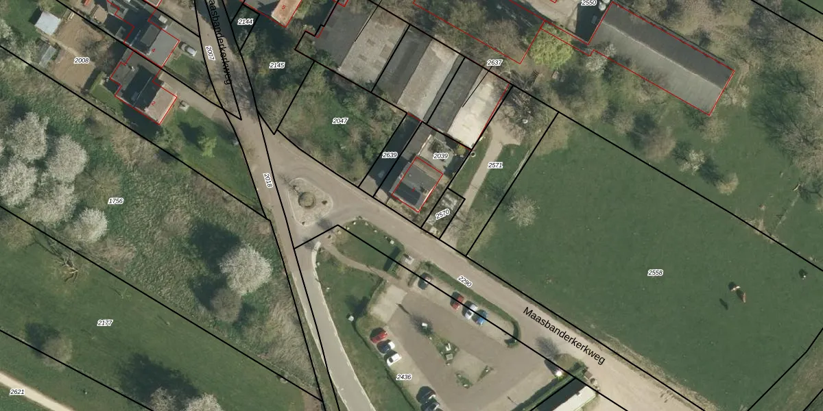 Maasbanderkerkweg 1 is gelegen op kadastraal perceel STE00E2039. Deze kadastrale aanduiding is uniek en wordt gebruikt door het Kadaster om eigendomsrechten en andere zakelijke rechten vast te leggen. Het perceel maakt onderdeel uit van de kadastrale gemeente Stein.