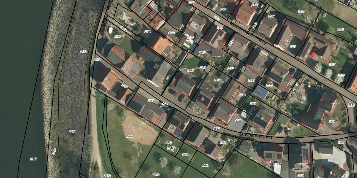 Maasbandervaart 13 is gelegen op kadastraal perceel STE00E2243. Deze kadastrale aanduiding is uniek en wordt gebruikt door het Kadaster om eigendomsrechten en andere zakelijke rechten vast te leggen. Het perceel maakt onderdeel uit van de kadastrale gemeente Stein.