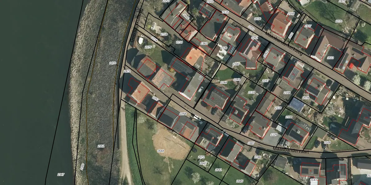 Maasbandervaart 15 is gelegen op kadastraal perceel STE00E2275. Deze kadastrale aanduiding is uniek en wordt gebruikt door het Kadaster om eigendomsrechten en andere zakelijke rechten vast te leggen. Het perceel maakt onderdeel uit van de kadastrale gemeente Stein.