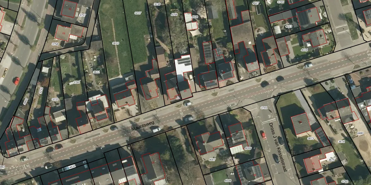 Mauritsweg 20 is gelegen op kadastraal perceel STE00C4258. Deze kadastrale aanduiding is uniek en wordt gebruikt door het Kadaster om eigendomsrechten en andere zakelijke rechten vast te leggen. Het perceel maakt onderdeel uit van de kadastrale gemeente Stein.